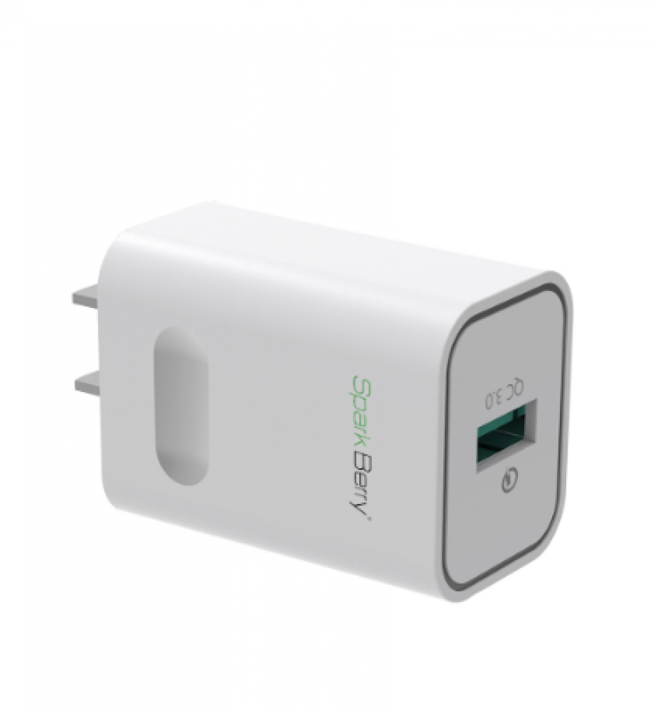 - يتمتع شاحن جداري سبارك بيري بقوة 18 وات بتقنيتي PD و QC لتوفير خيارات متعددة للشحن السريع.