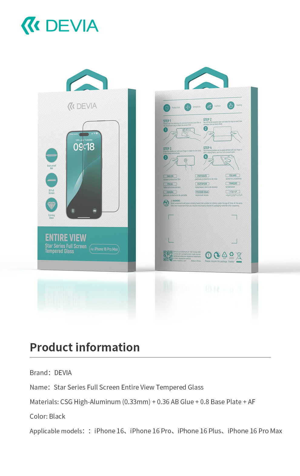 افضل استيكر حماية شاشة كاملة للأيفون 16 من ديفيا، منتج مصنع بجودة عالية مع حماية وصلابة وجمال متميز.