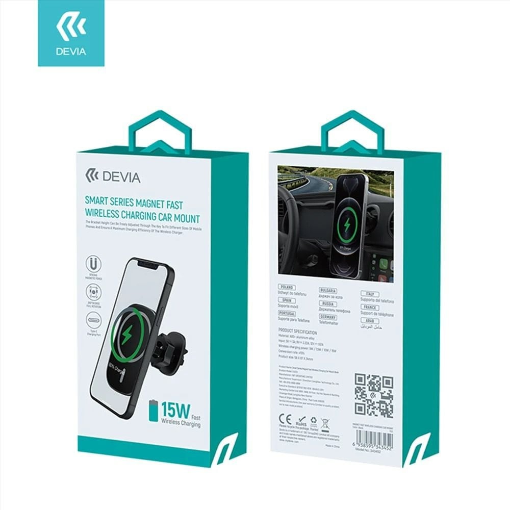 ديفيا مغناطيس سيارة مدمج مع شاحن لاسلكي - 15 واط