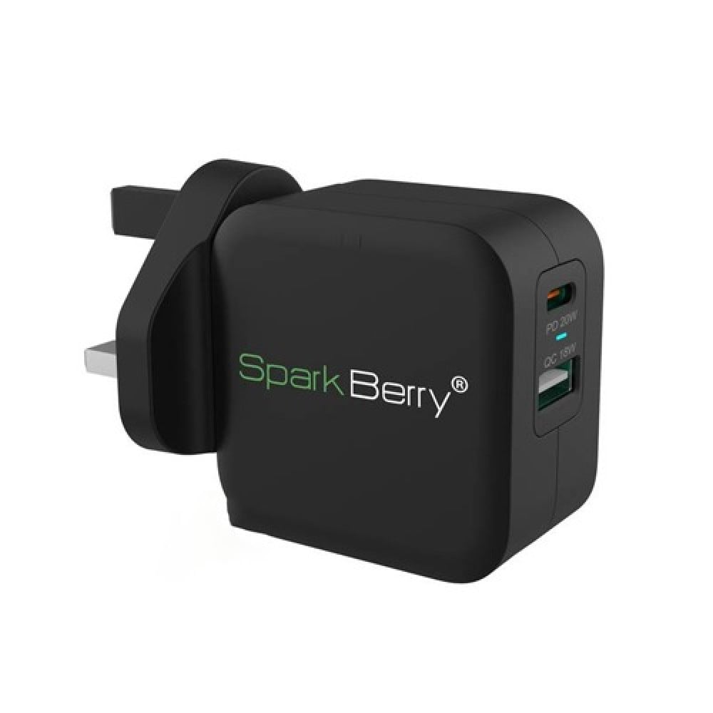 - يتمتع شاحن جداري سبارك بيري منفذين بقوة 37 وات بتقنيتي PD و QC لتوفير خيارات متعددة للشحن السريع.