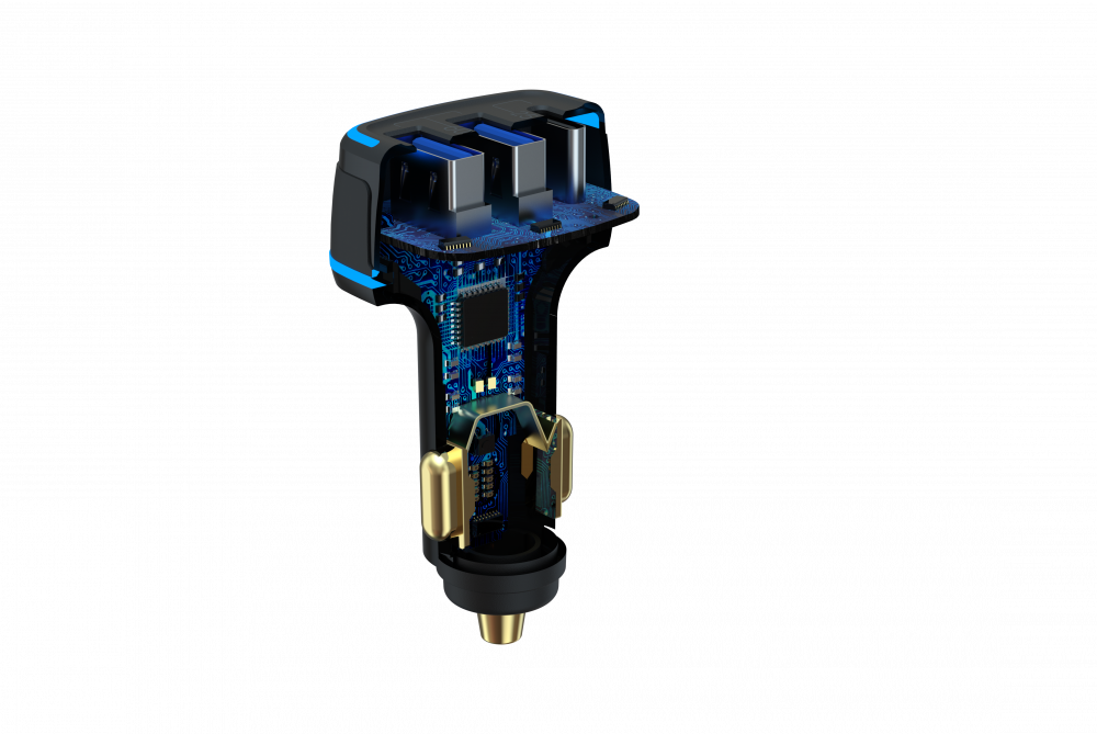 شاحن سياره منفذين USBومنفذ pD قوة 85 وات من ديفيا هو شاحن سيارة قوي يتميز بمخرجين USB بقوة 20 واط لكل منهما، ومخرج PD بقوة 45 وات. كما أنه يدعم الشحن السريع PD3.0، مما يسمح له بشحن الأجهزة بسرعة كبيرة.