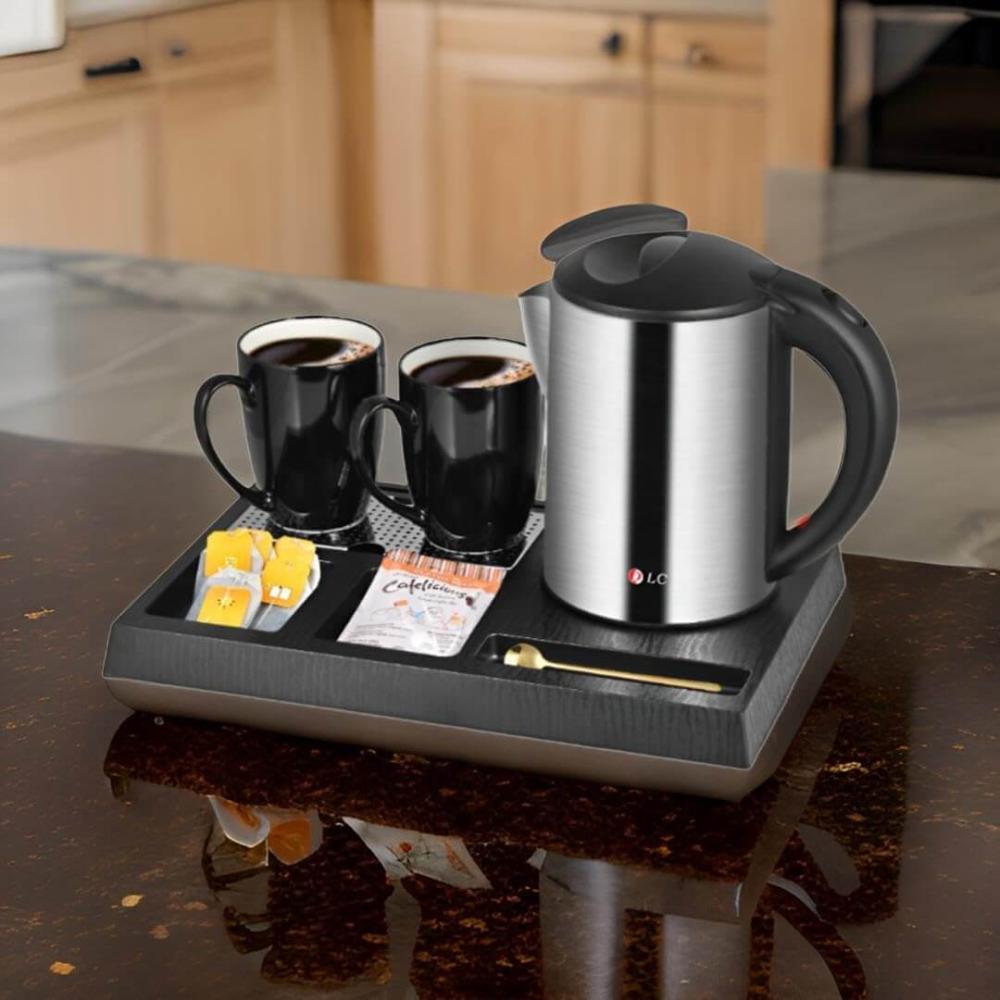طقم غلاية استيل فندقية مع 2 اكواب من السراميك وقاعدة بقوة 1500 واط وبسعة 1 لتر من كوما تك ضمان سنتين طقم غلاية فندقية فخم: تصميم أنيق وعصري يضفي لمسة ...