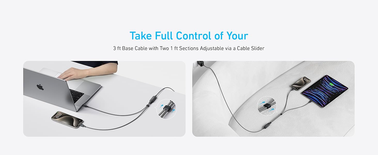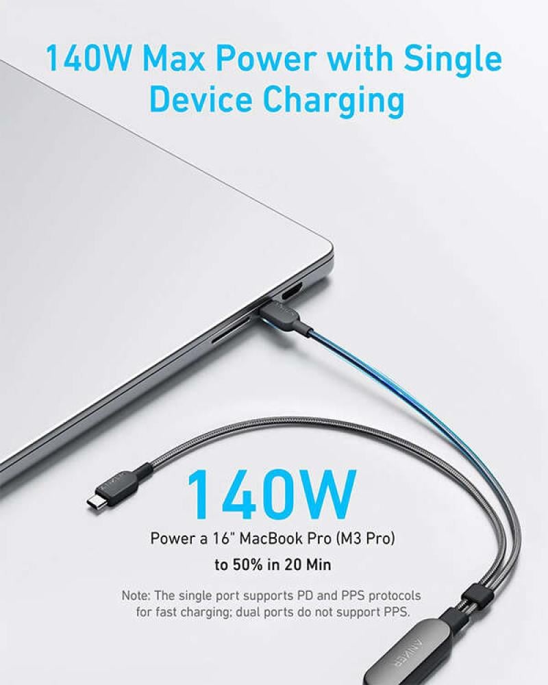 كيبل من انكر 2 في 1 تايب سي الى تايب سي بطول 1.2 متر بقوة 140 واط
