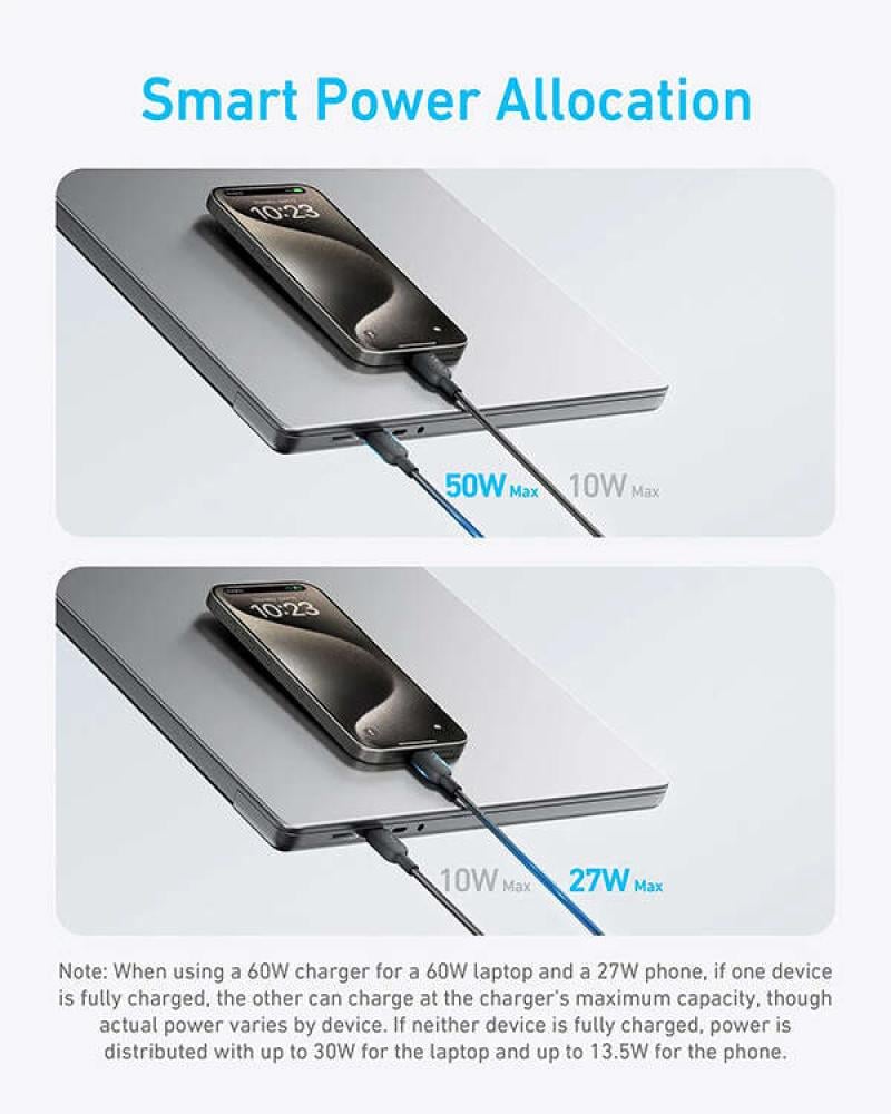 كيبل من انكر 2 في 1 تايب سي الى تايب سي بطول 1.2 متر بقوة 140 واطالمميزات:شحن مزدوج: يمكنك شحن هاتفك الذكي وجهازك اللوحي في نفس الوقت باستخدام كابل ...