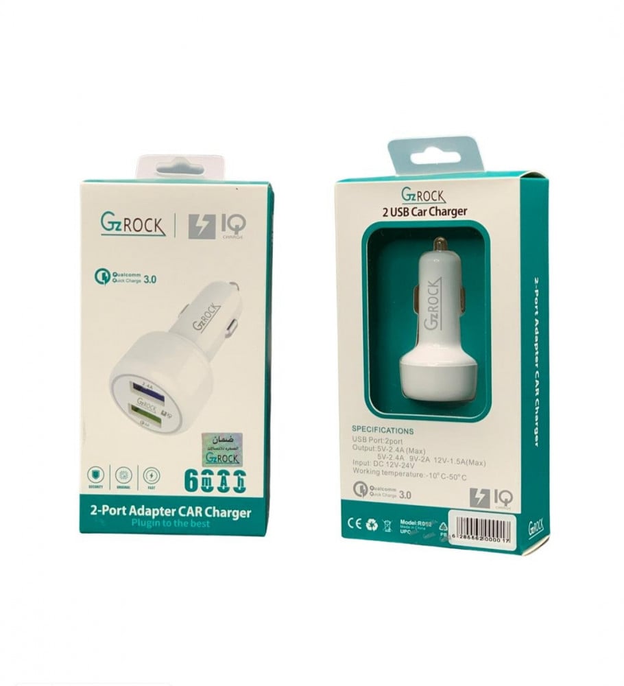 شاحن سيارة بمنفذين USBشحن سريع 5فولت 2.4 امبير كيو سي 3.0 , ابيض من GZROCK