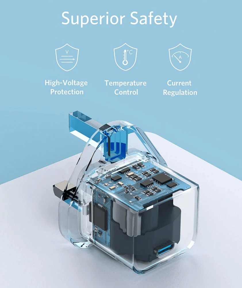 - آمن: يتميز الشاحن بحماية من التيار الزائد والحرارة الزائدة، مما يحافظ على سلامتك وسلامة جهازك.