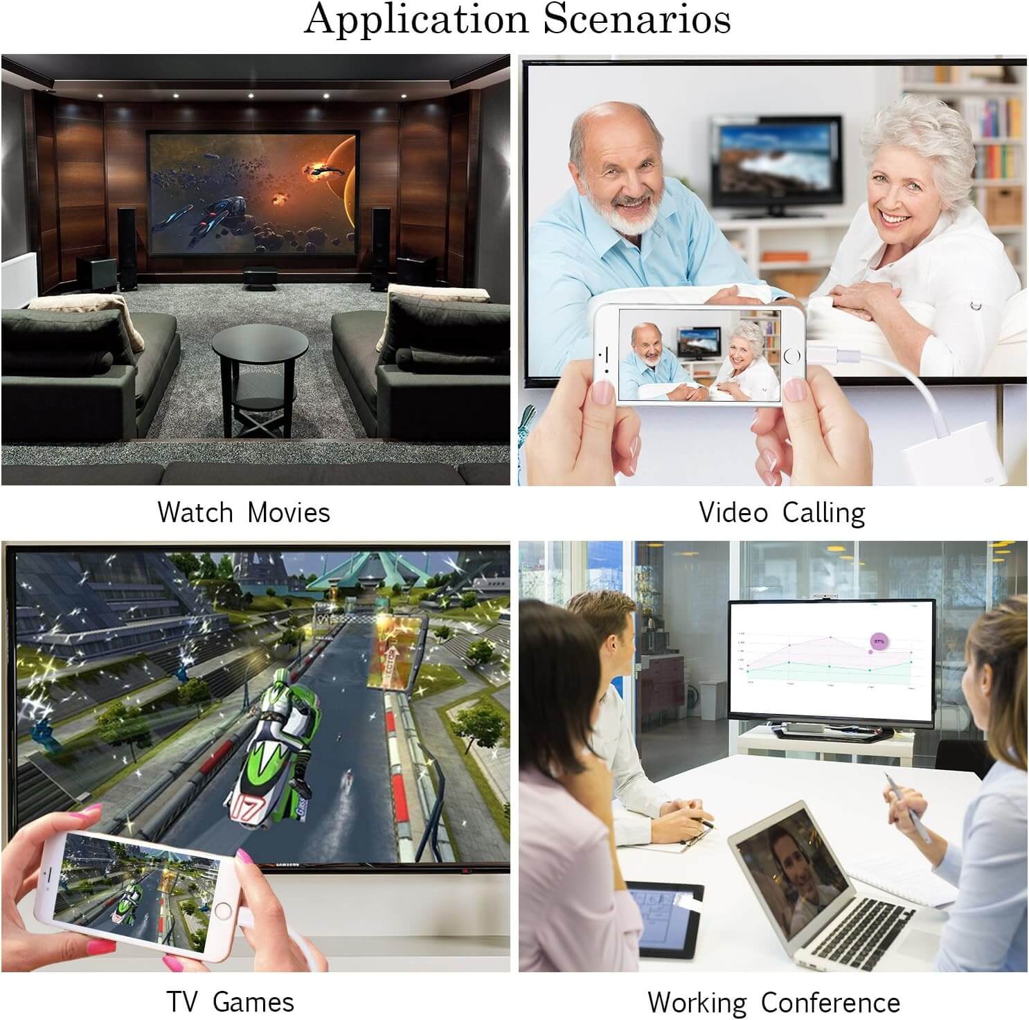 جودة صورة فائقة الوضوح بدقة 1080 بكسل: استمتع بعرض محتوى جهاز iPhone أو iPad أو iPod touch الخاص بك (بما في ذلك الصور ومواقع الويب والعروض التقديمية والبث المباشر من Twitch و Facebook و YouTube و Instagram و Twitter وتطبيقات Microsoft Office و FaceTime و Skype وغيرها) بدقة عالية على شاشة HD أو جهاز عرض أو تلفزيون HD. يدعم هذا المحول إخراج فيديو عالي الدقة يصل إلى 1080 بكسل لتجربة مشاهدة مذهلة.
