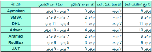 نود إعلامكم، وحسب توجيهات وزارة الاتصالات وتقنية المعلومات بمواعيد دوام شركات الشحن بمناسبة عيد الاضحى المبارك لتوصيل الشحنات قبل إجازة العيد وذلك